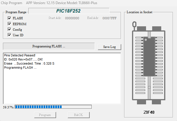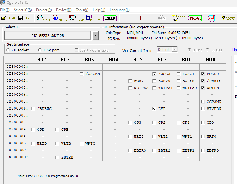 - Under Select IC, click the button and select the PIC18F252 DIP28 IC from the list.