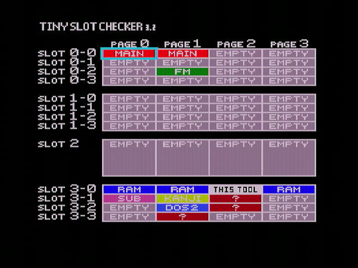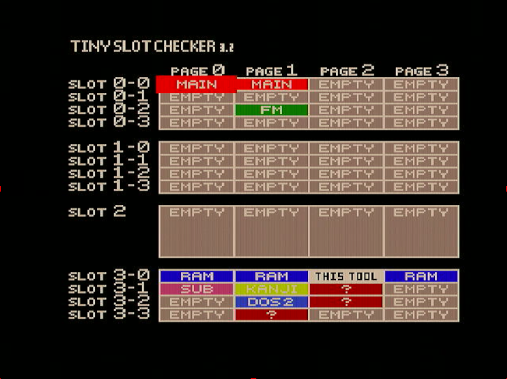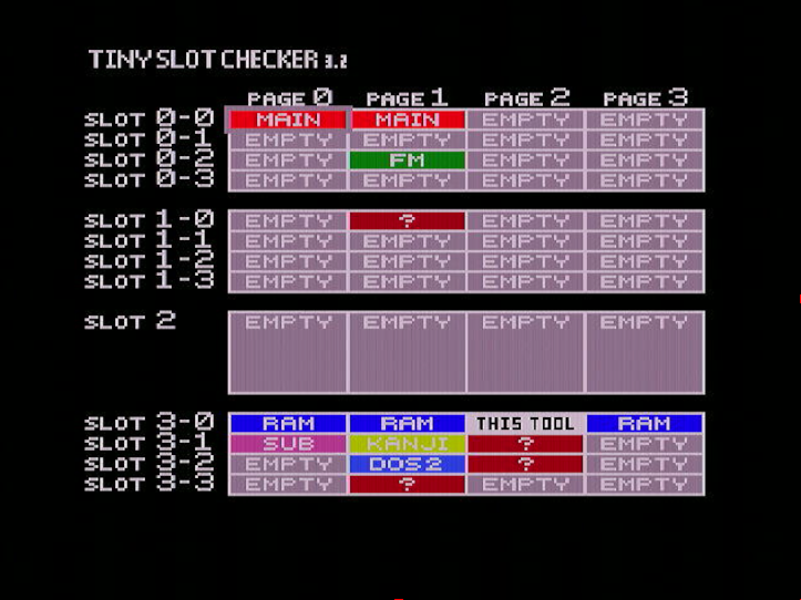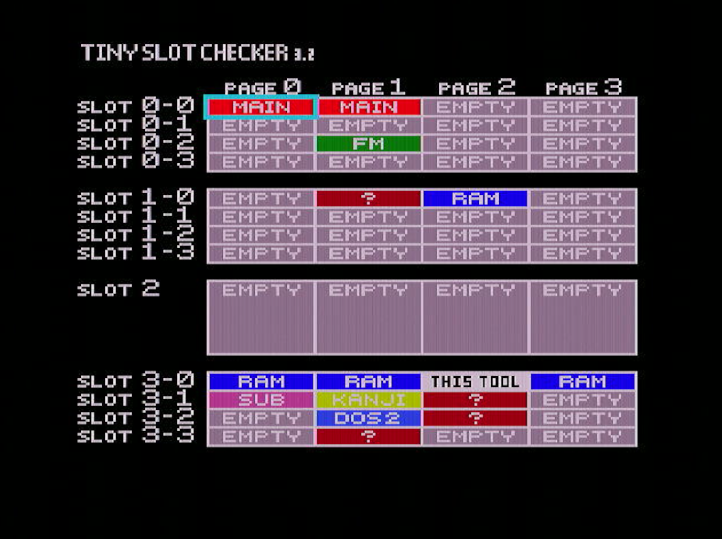 And now a screen shot of the same MSX with the slot expander