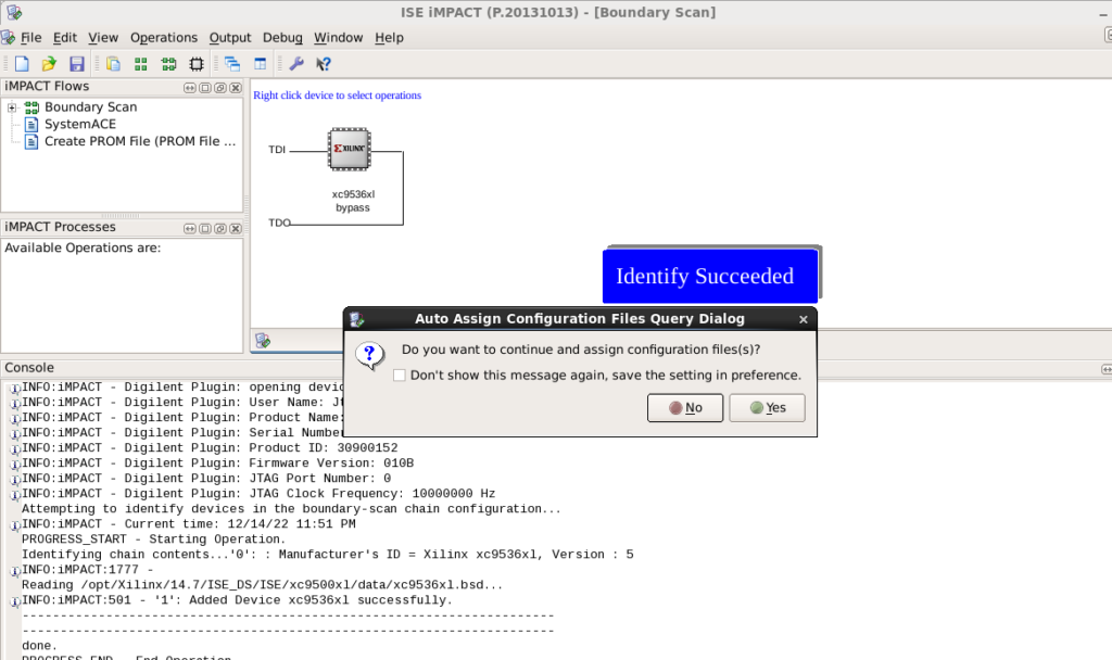 - At this point you need to have the CPLD recognized by iMPACT.