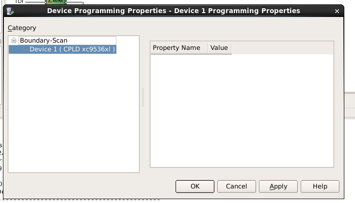 - Make sure the CPLD is being shown under Boundary-Scan and click OK on the Device Programming Properties window.